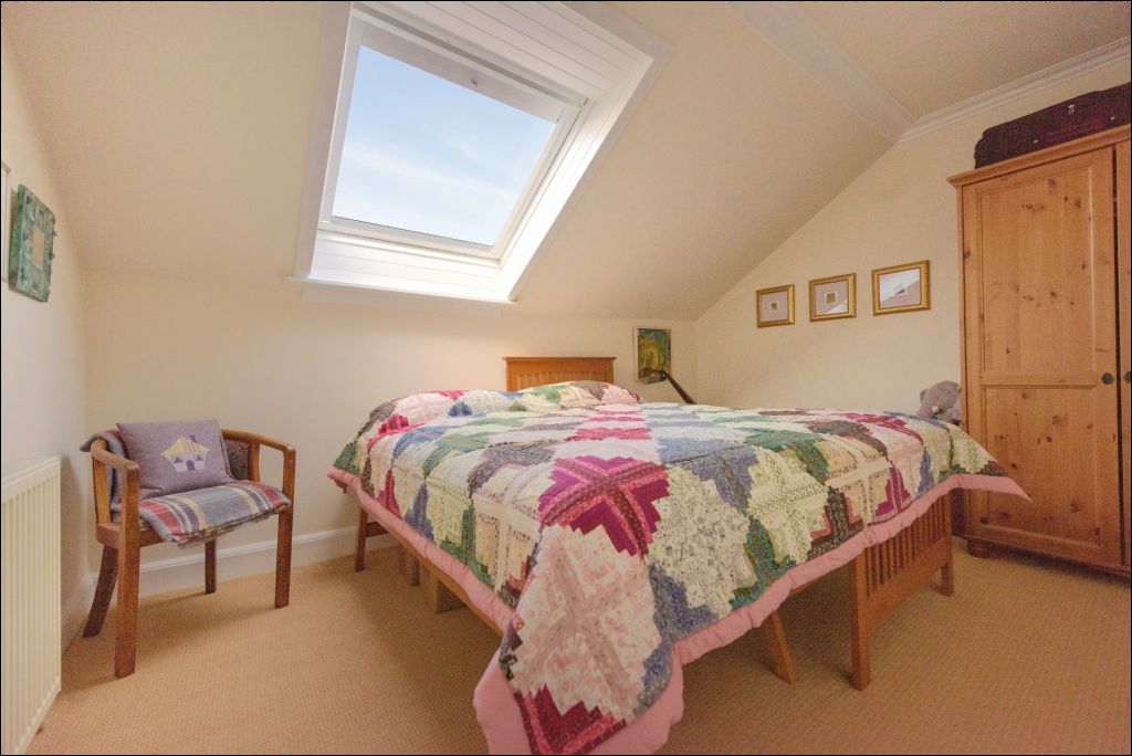 A notable feature of the property is the hidden staircase leading to the upper level, where two spacious double bedrooms are located. One benefits from a large Velux window to the front, while the other enjoys a dormer window to the rear, enhancing both light and space. A second shower room serves this level, along with useful additional storage and utility space.