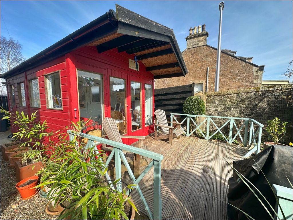Externally, the property is complemented by a beautifully maintained and mature garden to the side and rear. Thoughtfully arranged with stone chips, planting beds, and established shrubs, the garden offers a private and tranquil outdoor space. A substantial summerhouse with decking provides an excellent area for relaxing or entertaining, while an additional garden shed offers practical storage.