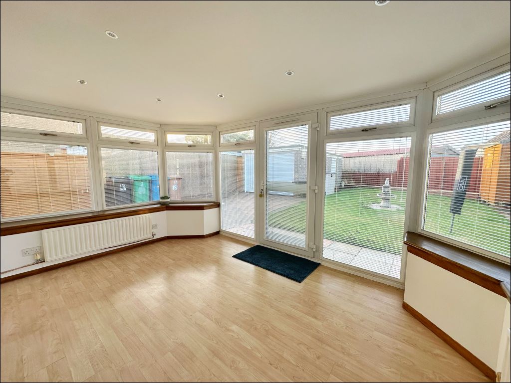 The property opens to the entrance hallway which is laid with wood effect laminate flooring extending through to the lounge. The lounge is well sized and is located to the front of the property benefiting from a large window allowing ample natural light to fill the room. The room is entered by a Georgian glass door and has been freshly decorated. To the rear of the property is the modern kitchen with conservatory. The kitchen benefits from fitted wall and base units with an integrated microwave, oven, gas hob and stainless-steel sink. There is space for further white goods, and the fridge freezer is included. A perfect space for dining, the conservatory is generously sized and benefits from the privacy of the rear garden.