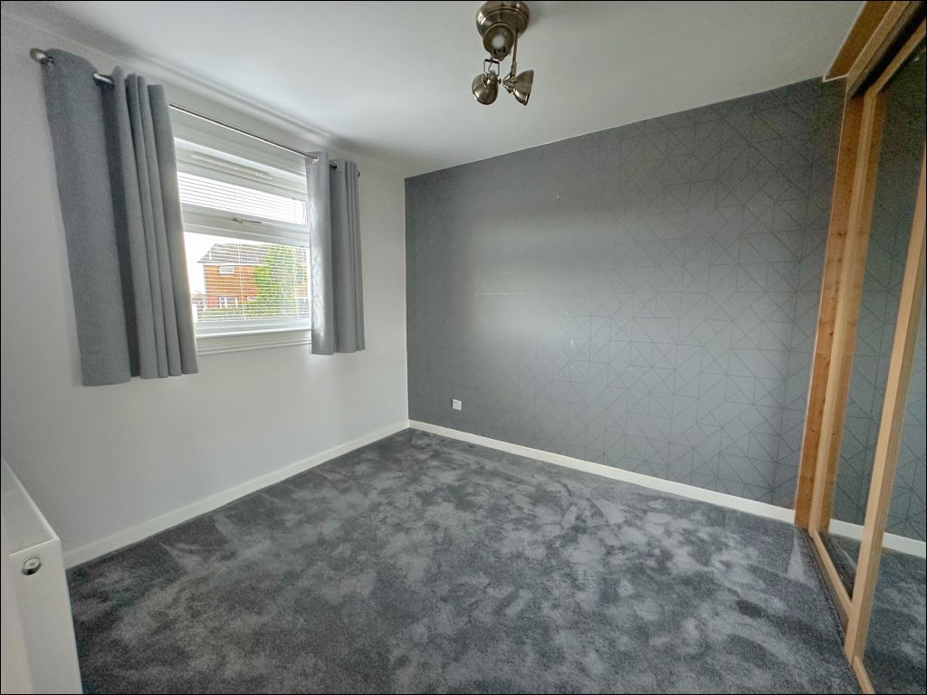 Both bedrooms are of similar size and are laid with carpet flooring and benefit from fitted wardrobes. The bathroom is also of a modern design and is fitted with a white three-piece suite and vanity unit offering ample storage space. The room also has a stainless-steel heated towel rail and mirrored medicine cabinet.