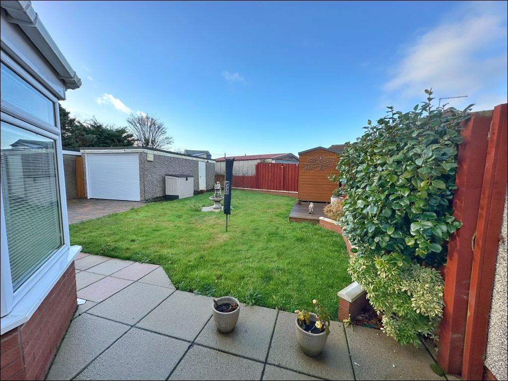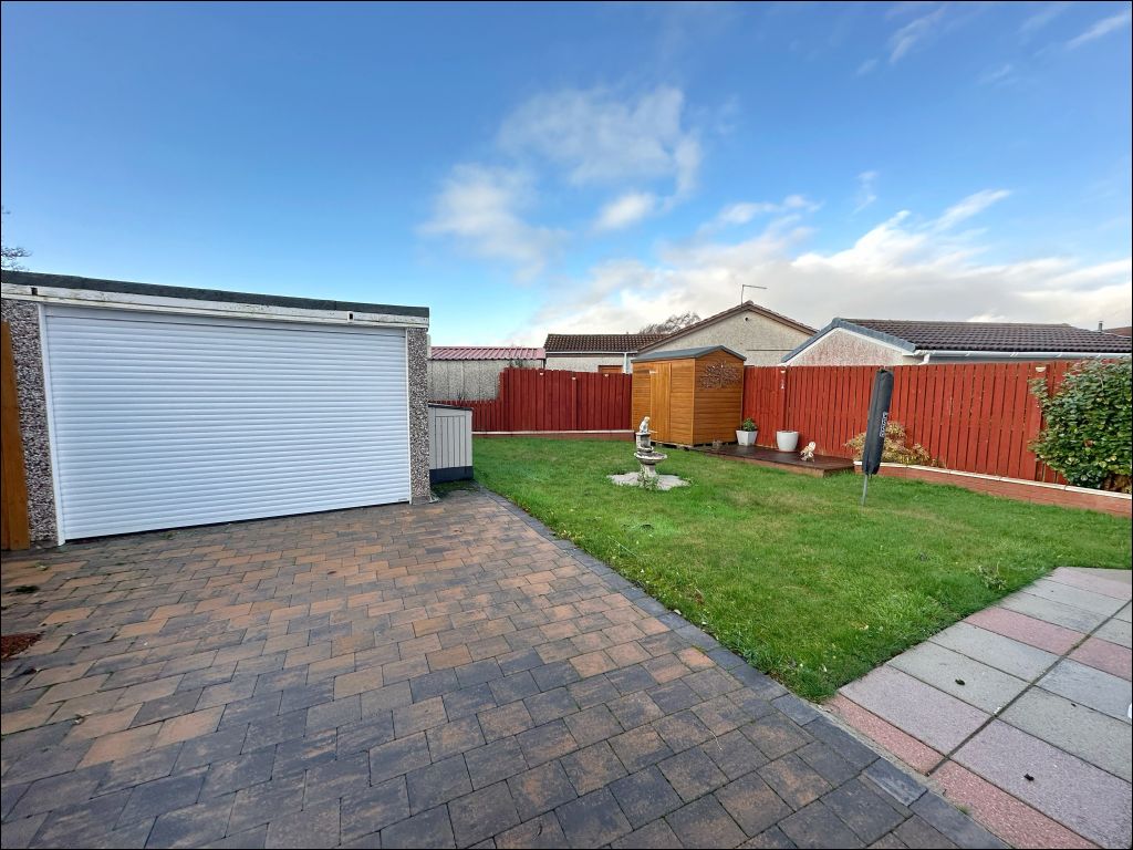To the front of the property is a lawned garden and monoblock driveway leading to the garage. The rear garden is a versatile space with patio and decking ideal for outdoor dining, and lawn. The timber shed is also included, perfect for further storage.