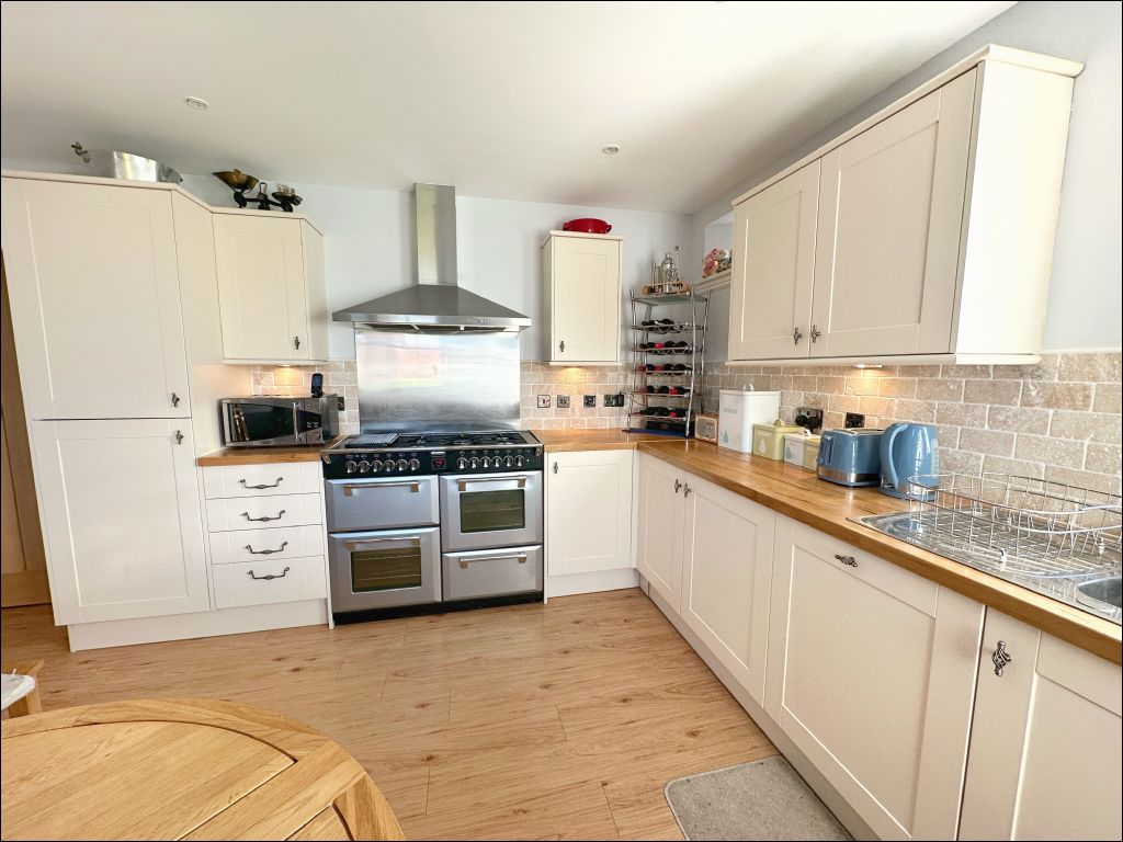 To the front of the property is parking for two cars and a large lawned garden with mature hedge offering privacy. There is also a timber decked area offering a space for outdoor dining.