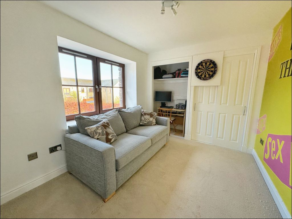 The property opens to the entrance vestibule which is laid with wood effect Karndean flooring which extends through to the hallway. The hallway provides access to all rooms on the ground floor with a carpeted staircase and a large storage cupboard below. The lounge is an excellent space for families and is well lit with views across the front and rear garden. The solid wood flooring provides an attractive and high-quality feature to the room and compliments the internal doors. The kitchen is also well sized providing ample space for dining and is fitted with cream wall and base units with a wood worktop. The free-standing range cooker is included within the sale and is an impressive feature within this room and sits with a matching stainless steel splashback and extractor hood. To the rear of the property is the utility room, excellent for additional white goods and includes wall and base units matching to the kitchen. There is door opening to the courtyard ideal for outdoor dining in the summer months. Also on the ground floor is the dining room/fifth bedroom which is laid with carpet flooring and benefiting for a floor to ceiling window offering extensive views towards Castle Huntly.