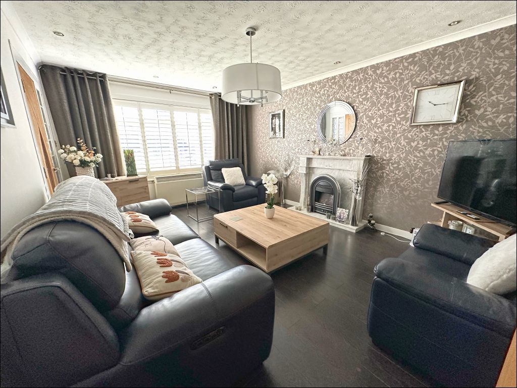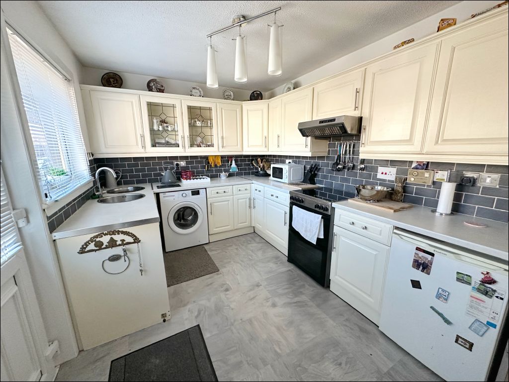 The property opens to the entrance vestibule which is laid with tiled flooring and includes a good size storage cupboard with hanging rail and shelves. The lounge is located to the front of the property benefiting from floods of natural light through the large window. The room is finished with a decorative marble fireplace with electric fire and contemporary glazed doors. The open plan dining room and kitchen are accessed from the lounge providing an excellent area for family dining and entertaining. The kitchen is fitted with cream wall and base units with a contrasting slate grey tiled splashback. The appliances included within the purchase price are the free-standing cooker, washing machine and under counter fridge. A UPVC and glass door opens to the driveway for easy access.