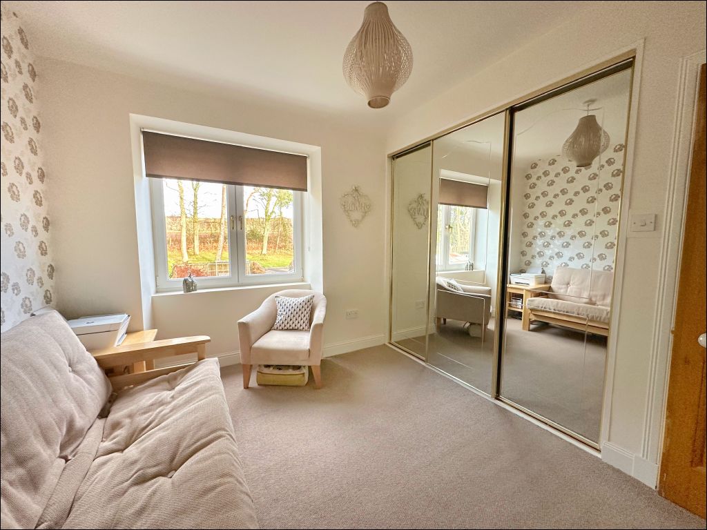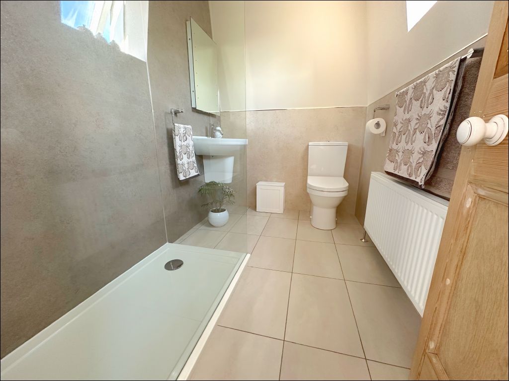 The first floor accommodation offers access to the two double bedrooms both with integrated wardrobes with mirror sliding doors. The shower room is of a modern design with a walk-in shower, white wash-hand basin and WC. The room is finished with tiled flooring complimenting the wet wall surround.