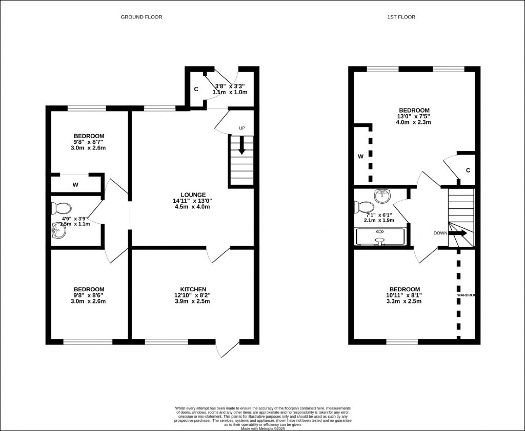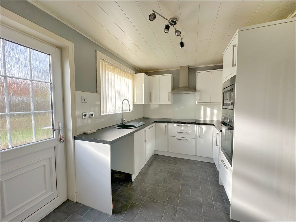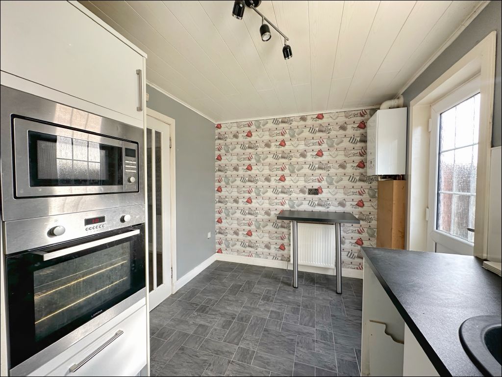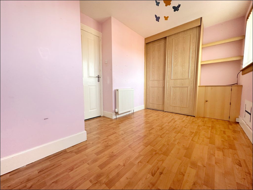 The property opens to the entrance vestibule which is laid with laminate flooring which extends through to the lounge. There is a good sized cupboard within the vestibule which houses the fuse box and is an ideal space for coats and shoes. The spacious lounge is located to the front of the property with a large front facing window and carpeted stairs leading to the first floor accommodation. The downstairs bedrooms and WC are accessed from the lounge with the larger bedroom benefiting from fitted wardrobes with mirror sliding doors. To the rear of the property is the kitchen with white wall and base units and a contrasting black worktop and black sink. The integrated appliances include an oven, microwave, electric hob and dishwasher. The room is also fitted with a breakfast bar and a door opening to the enclosed rear garden.
