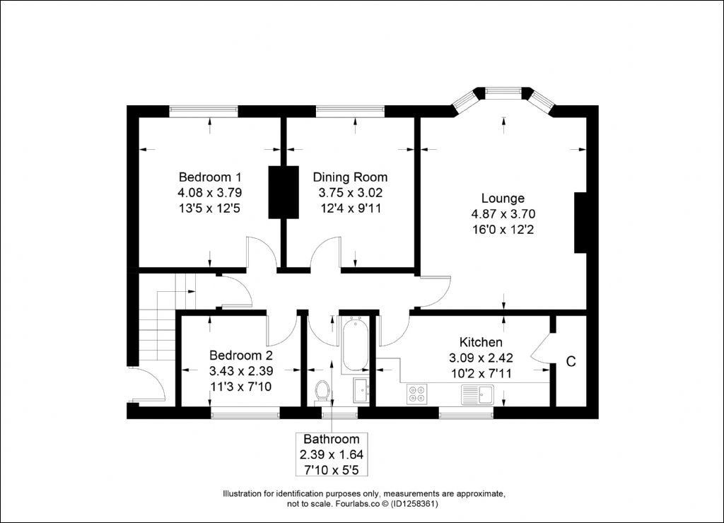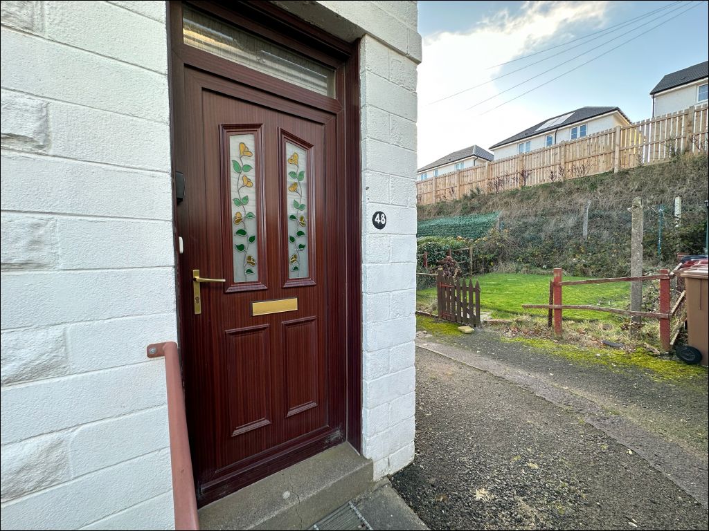 The property benefits from a main door entrance which opens to the carpeted staircase which leads to the entrance hallway providing access to all rooms within the property. The lounge is located to the front of the property benefiting from a large bay window allowing ample natural light to fill the room. The room is fitted with carpet flooring and includes an electric fire with marble effect surround. The kitchen is located to the rear of the property benefiting from a south facing window looking across the rear garden. The room is fitted with wall and base units with space for white goods. In addition, there is a pantry and a fitting breakfast bar.