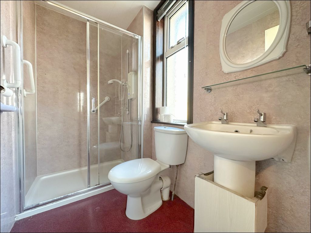 The two double bedrooms are of similar size with one to the front of the property and the other to the rear. Both are fitted with carpet flooring and benefit from storage cupboards. The shower room includes a large walk in shower cubicle with an electric shower, wash hand basin and W.C. The room is finished with a wet wall surround and frosted window.